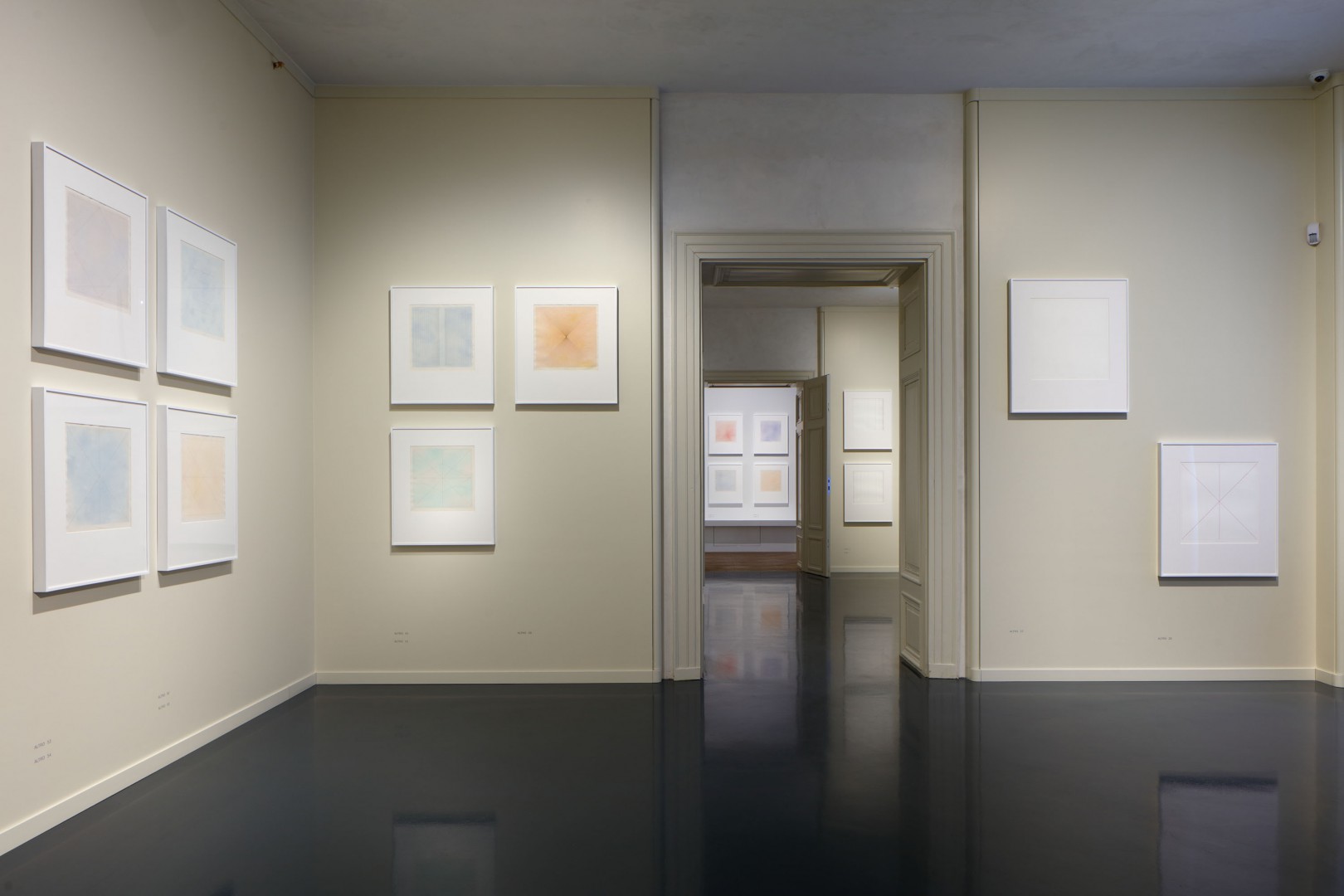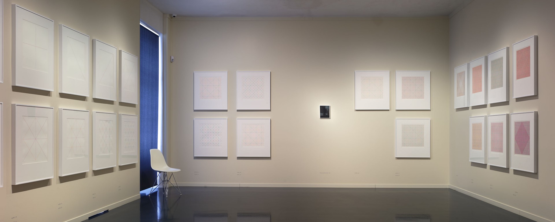 n„…v obsáhlém souboru kreseb z roku 1977 se Václav Boštík obrací k bezednu, neustálým prohlubováním plochy dospívá až k nedohlednu a nachází mez, po jejímž překonání se následné mění v současné… vystavuje diváka závratné zrakové zkušenosti…“