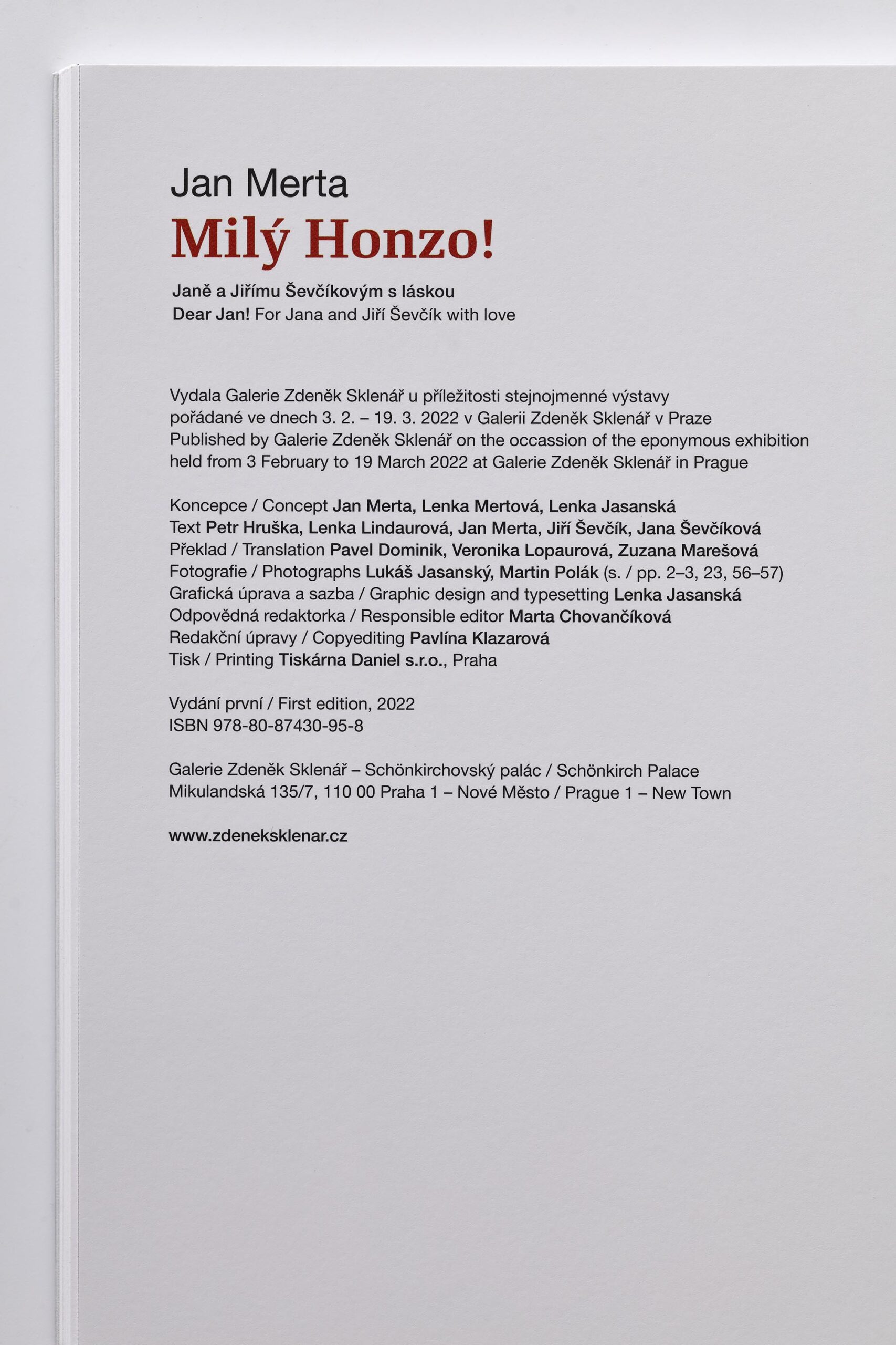 Katalog Jan Merta – Milý Honzo! vychází u příležitosti stejnojmenné výstavy pořádané ve dnech 3. 2. – 19. 3. 2022 v Galerii Zdeněk Sklenář v Praze.