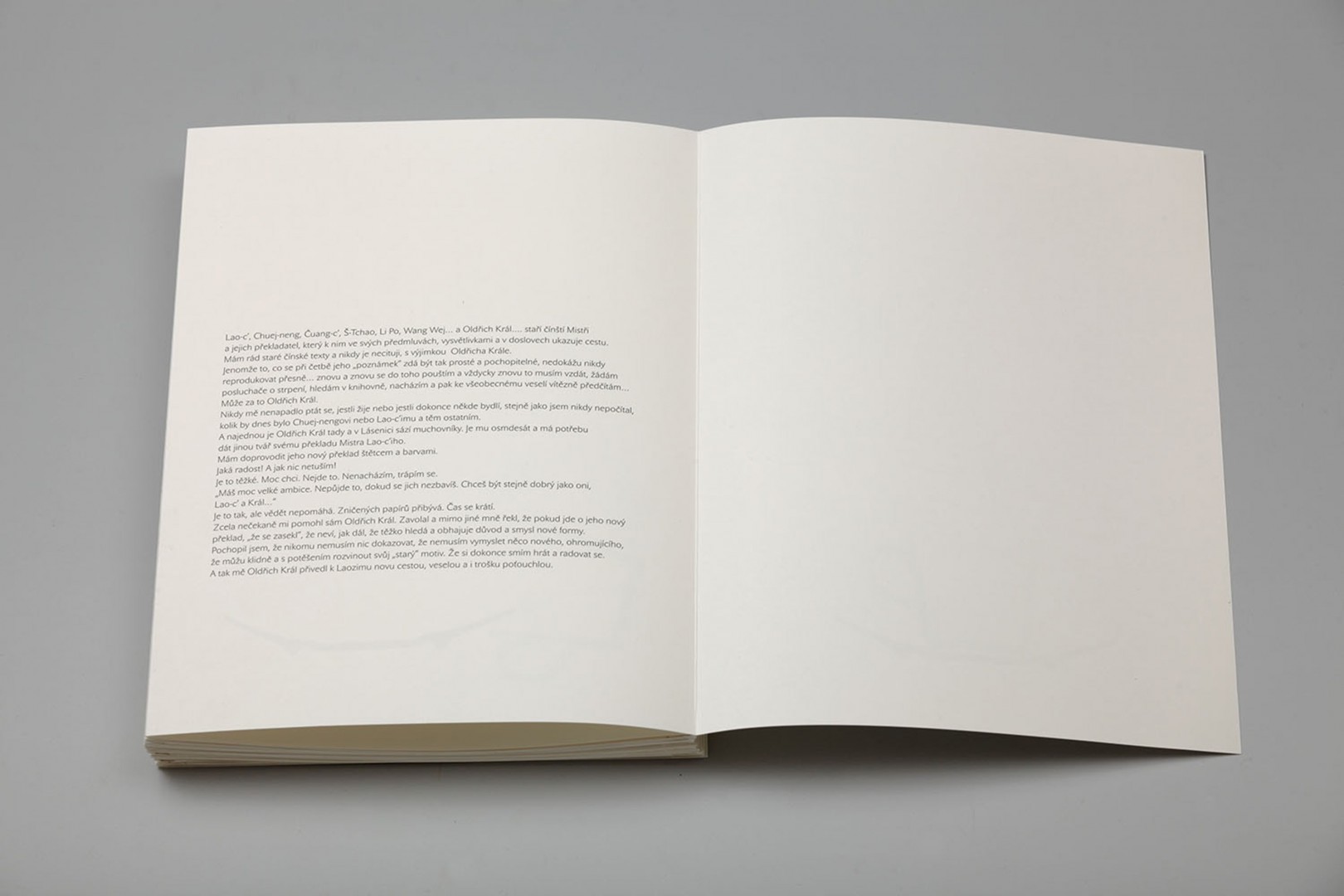 Leporelo maleb Jana Merty bylo vydáno u příležitosti oslavy 80. narozenin profesora Oldřicha Krále a křtu jeho nového překladu LAOZI – Kniha o Cestě a Síle vydaného jako bibliofilie. Ta byla pokřtěna 9. 11. 2010 na vernisáži výstavy LAOZI – Nový překlad Oldřicha Krále doprovází Jan Merta, která se konala ve dnech 10.–27. 11. 2010 v Galerii Zdeněk Sklenář v Praze.