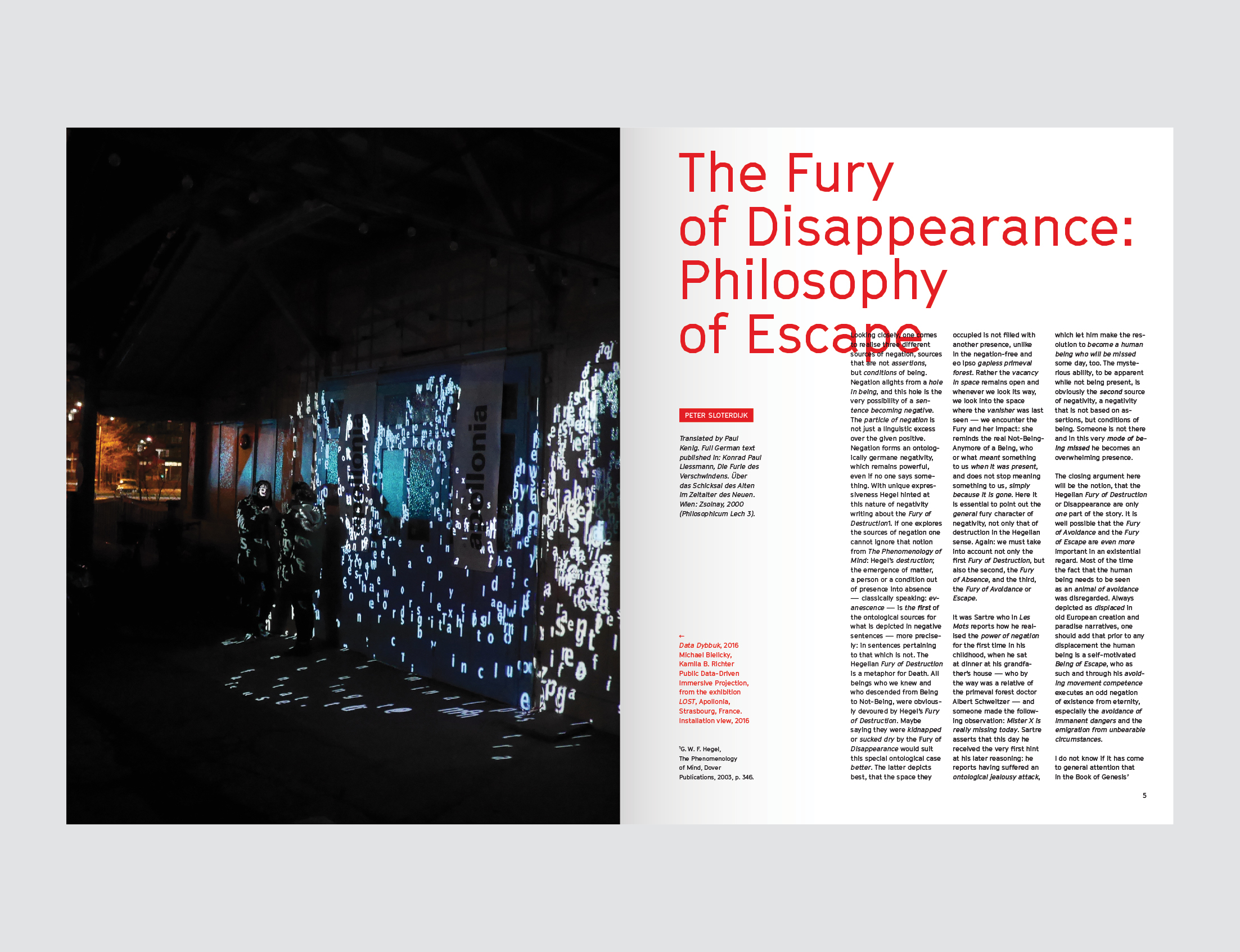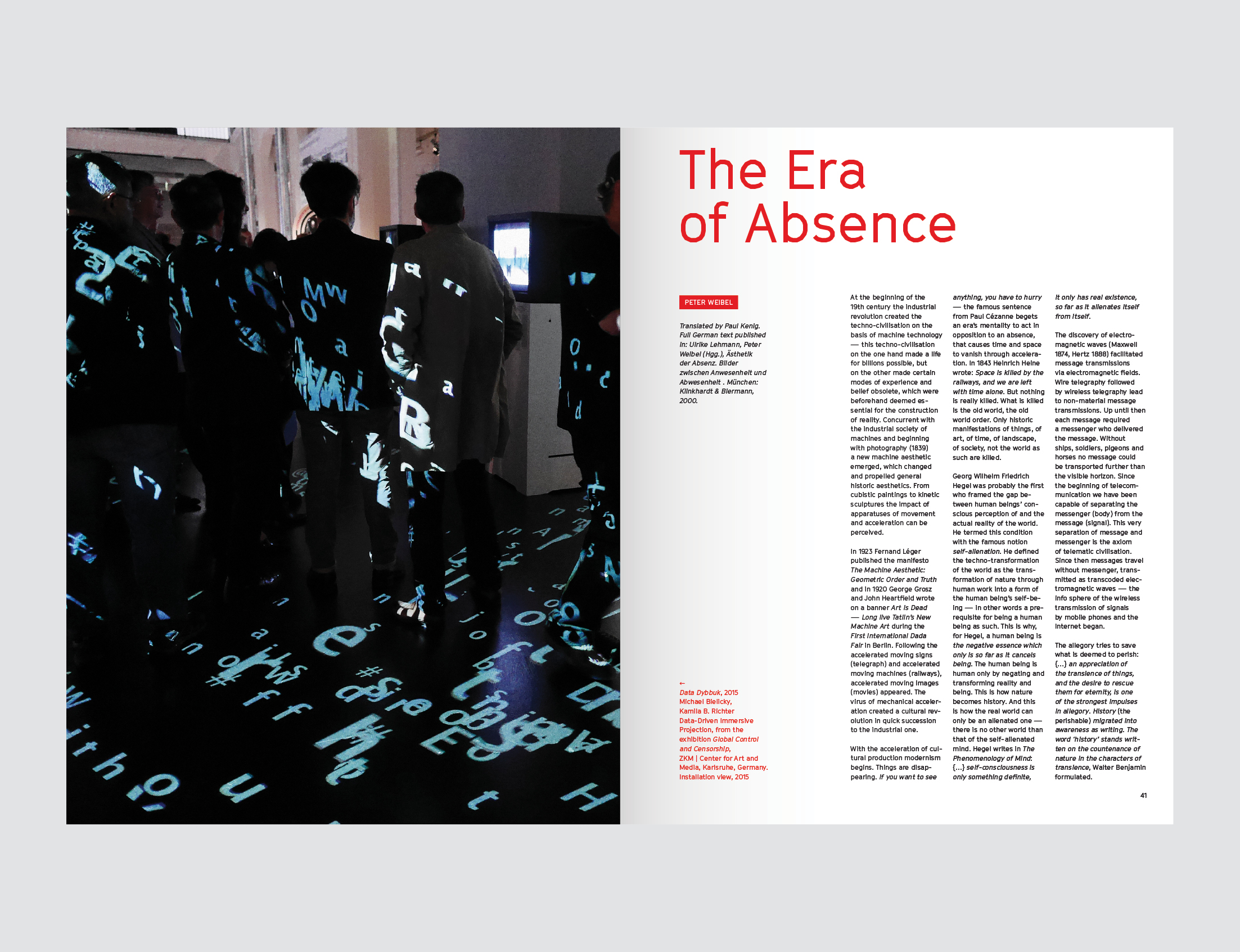 Filozofické a historické úvahy Petera Weibela a Petera Sloterdijka tvoří v knize ideový rámec pro pochopení tvorby této autorské dvojice. Paul Kenig se ve svém textu věnuje samotné tvorbě uměleckého dua.
