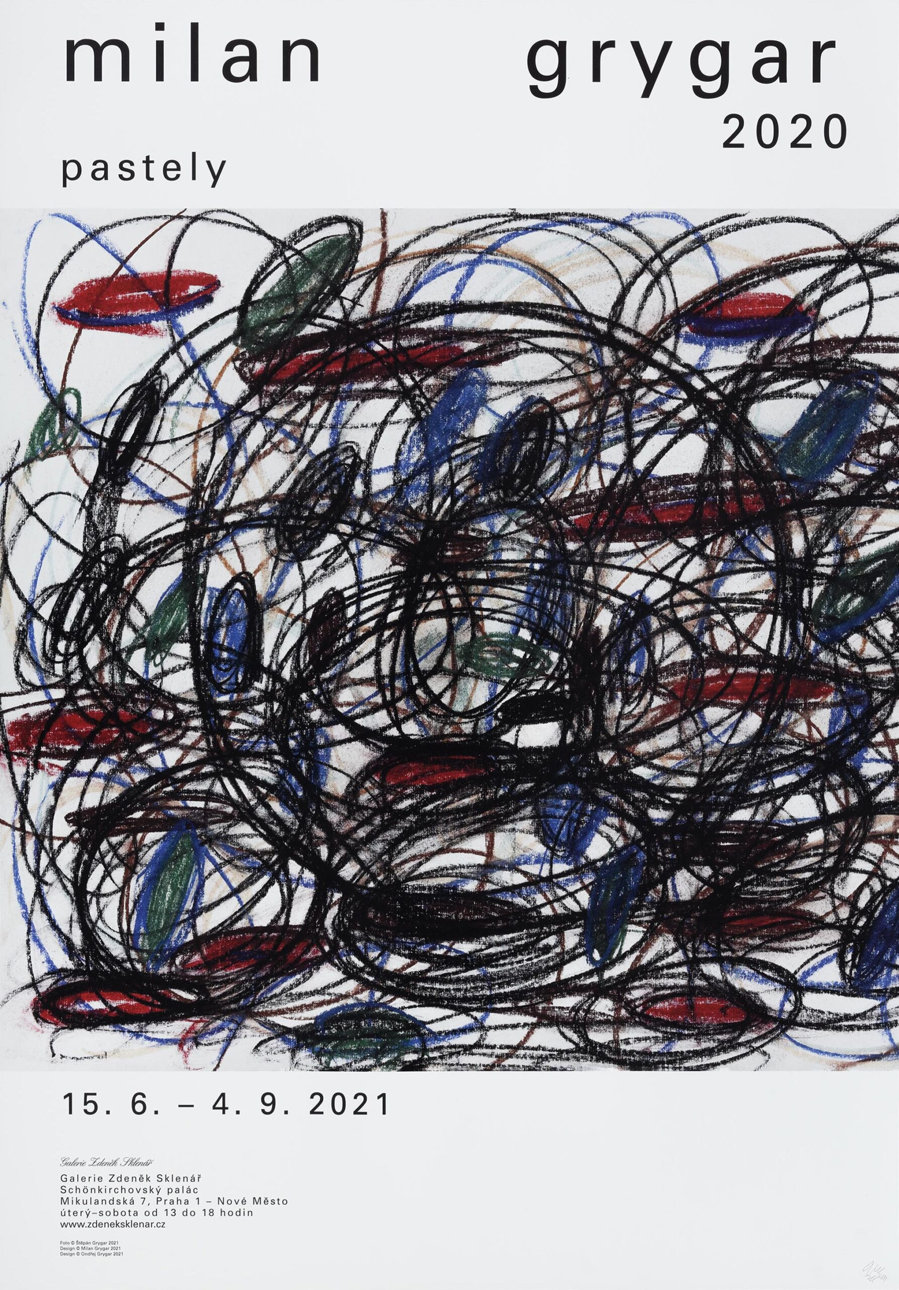 Plakát vydaný u příležitosti stejnojmenné výstavy Milan Grygar 2020 –  Pastely, konané od 15. 6. do 4. 9. 2021 v Galerii Zdeněk Sklenář, Mikulandská 7, Praha.