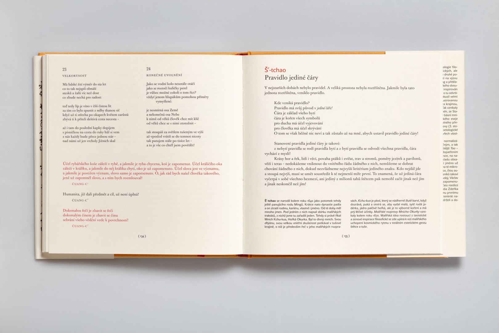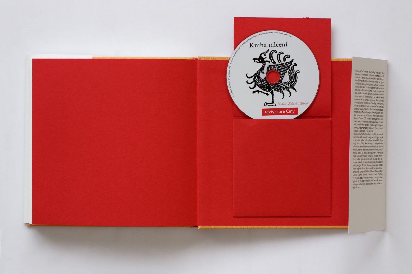 Kniha vyšla v roce 1971, kvůli zásahu normalizátorů pod odtažitějším názvem Tao – texty staré Číny. Původní zamýšlené jméno však zůstalo nedopatřením zachováno na mikrodesce, která byla součástí většiny nákladu. Nahrávka, na níž autorovy překlady čínských filosofů a básníků čtou takoví mistři jako Jan Werich, Radovan Lukavský, Václav Voska a Josef Kemr, je znovu součástí naší reedice. Knize tehdy vtiskl nezapomenutelnou tvář typograf Oldřich Hlavsa. Reedice Galerie Zdeněk Sklenář v podání vynikajícího grafika Zdeňka Zieglera chce být tvořivou poctou tomu prvnímu vydání, všem jeho tvůrcům, kteří je tenkrát navzdory nepřátelským okolnostem podrželi a dovedli do konce.