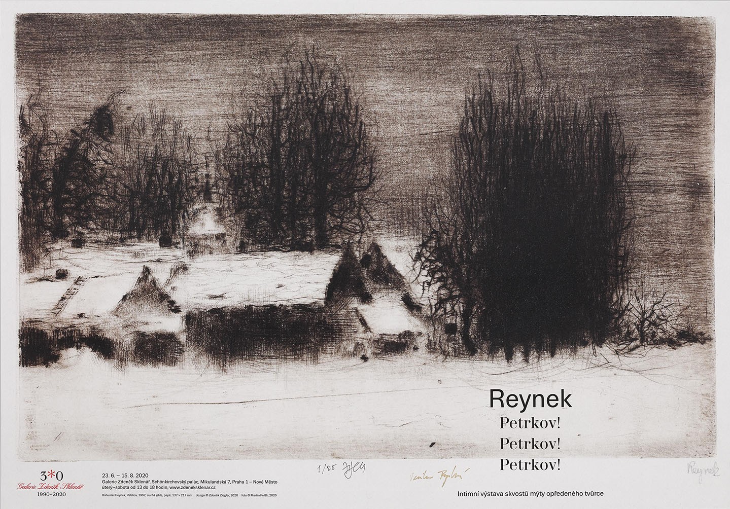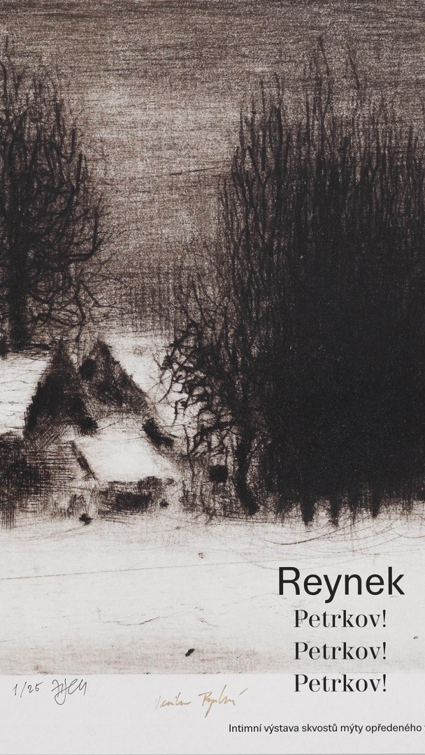 Plakát vydaný u příležitosti stejnojmenné výstavy Reynek Petrkov! Petrkov! Petrkov!, konané od 23. 6. do 15. 8. 2020 v Galerii Zdeněk Sklenář, Mikulandská 7, Praha 1.