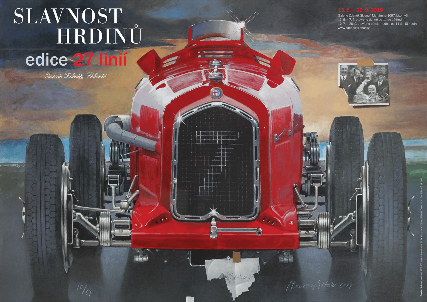Plakát vydaný u příležitosti stejnojmenné výstavy Slavnost hrdinů – Edice 27 linií, konané od 13. 6. do 29. 9. 2019 v Galerii Zdeněk Sklenář, Mariánská 1097, Litomyšl.