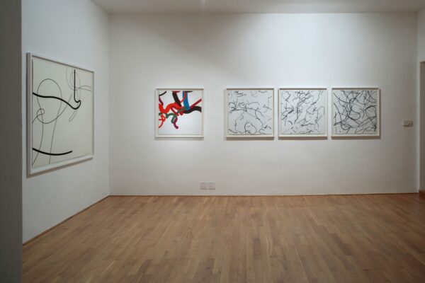 grafický list vytvořený podle obrazu Linie č. 197, 2001, akryl, plátno, 150 x 150 cm